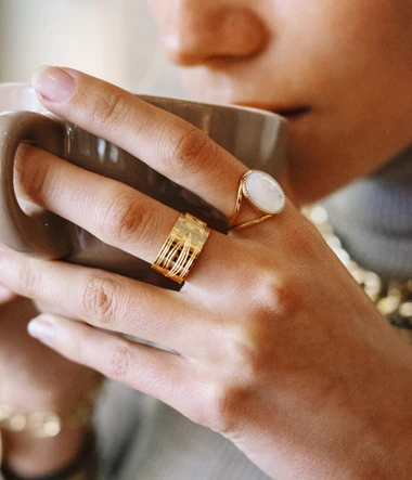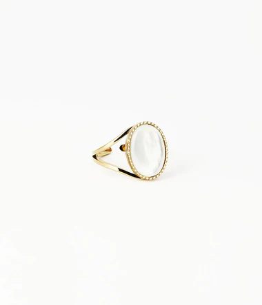 Bague ajustable en doré à l’or fin sertie d’un cabochon de pierre fine.